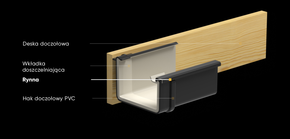 Innowacyjny element, który zalecamy stosować w miejscu uszczelki, dzięki zastosowaniu wkładki doszczelniającej, rynna i kształtka z uszczelką idealnie przylegają do siebie, tworząc wysoką szczelność miejsc łączenia elementów systemu.